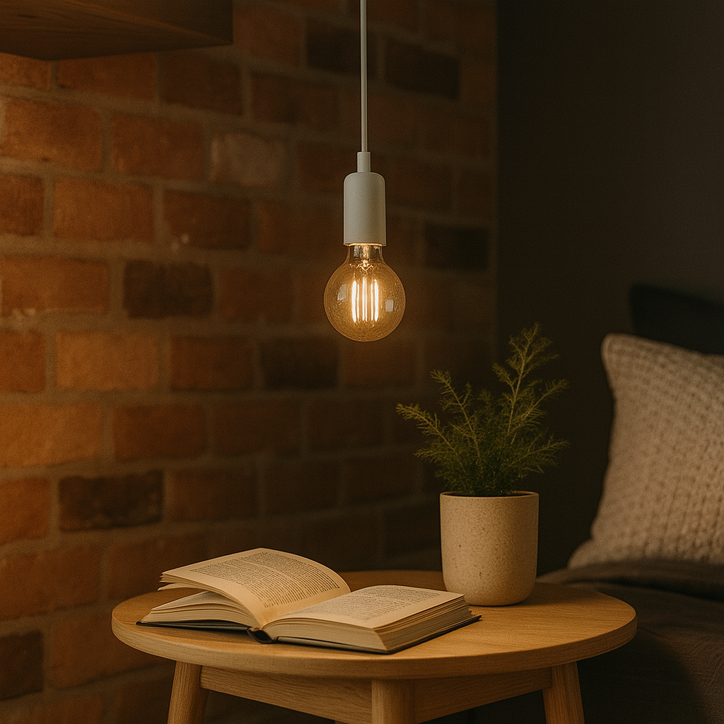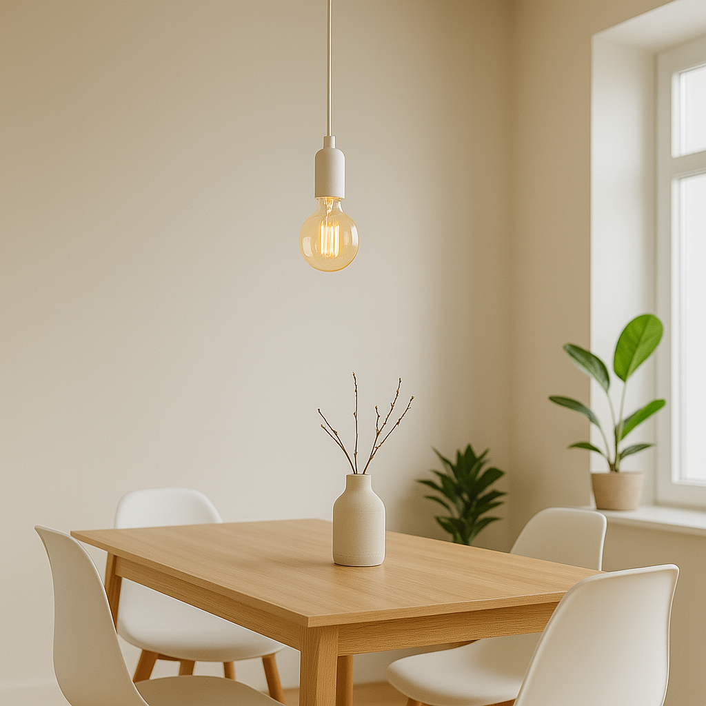 Colgante con portalámpara de silicona blanca, base E27 y un diámetro de 9cm. Su diseño simple y moderno lo hace ideal para crear una iluminación discreta y funcional en cualquier espacio, desde cocinas hasta oficinas o habitaciones. Lamparita no incluida.