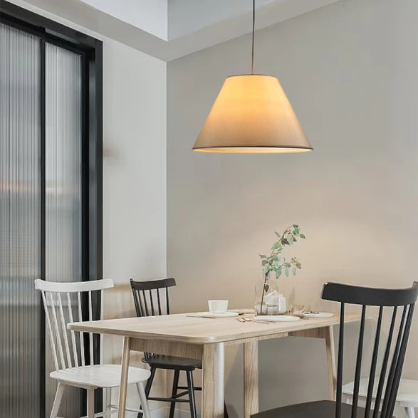 Colgante con pantalla de tela blanca y base E27. Con un diámetro de 420mm, este colgante ofrece una luz suave y difusa, ideal para crear ambientes cálidos y acogedores en comedores, salas de estar o dormitorios. Lamparita no incluida.