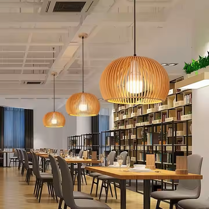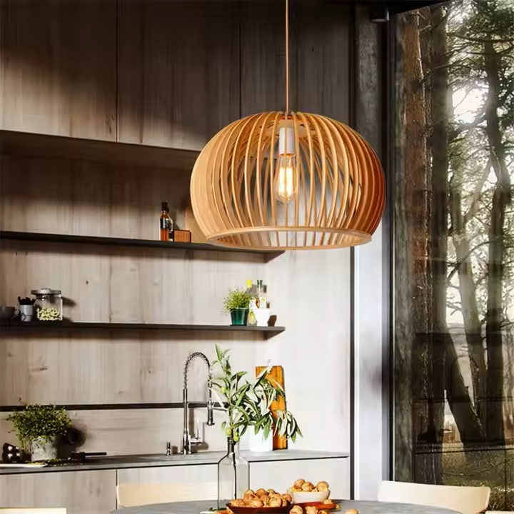 Colgante Campana Varillas Madera 1xE27 Ø330mm - YADI