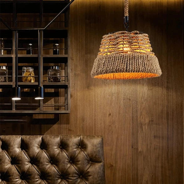 Colgante Cónico Metal y Cuerda 1xE27 Ø365x230mm - F7610 YADI