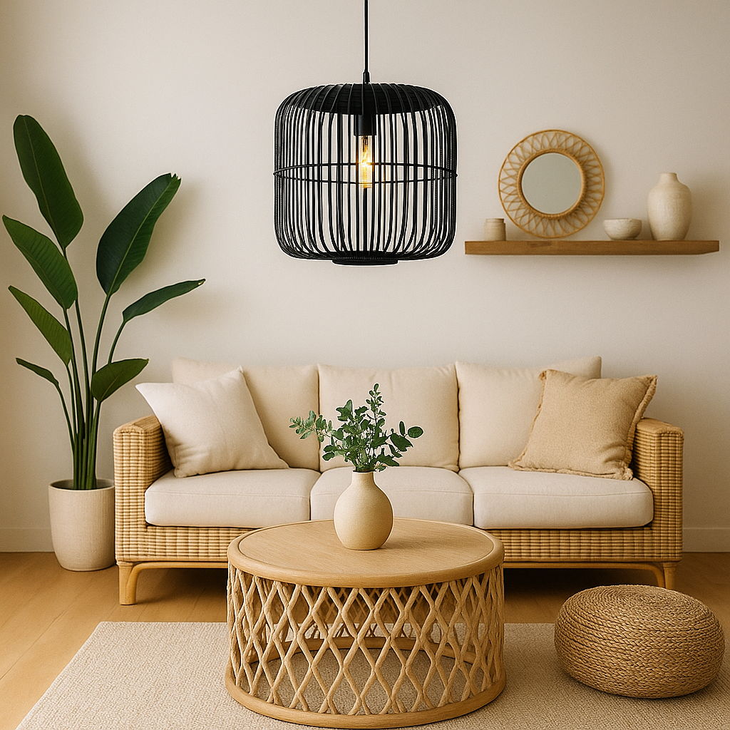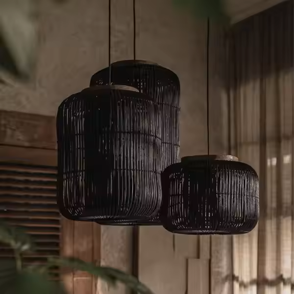 Colgante Cilíndrico Varillas Bambú 1xE27 Ø400x400x12 - YADI