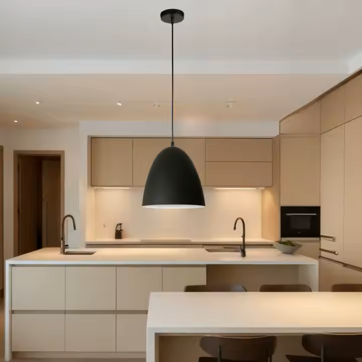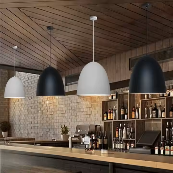 Lámpara de estilo industrial en forma de campana, ideal para crear un ambiente moderno y sofisticado. Contiene forma de campana en cuerpo de aluminio color negro de Ø240mm, conexionado para 1 lámpara de pase E27, no incluida. Puede ser LED o bajo consumo. Lamparita no incluida.