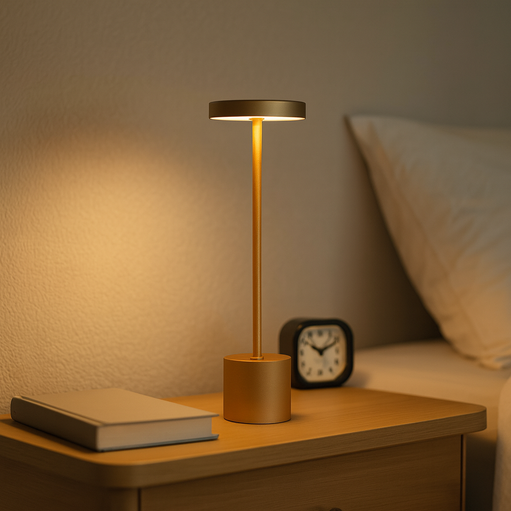 La Lámpara de Mesa NINI Recargable DIMM – Gold combina diseño minimalista y luz cálida para crear atmósferas acogedoras donde la pongas. Su LED de 5 W entrega 150 lm con 3 niveles de brillo táctiles, ideal para mesita de noche, escritorio o rincón de lectura. La batería de 5200 mAh ofrece 16–20 h de uso por carga y se repone en 4–5 h mediante USB-C (Tipo C). Con protección IP52, vida útil de +50.000 h y un cuerpo en oro satinado que no encandila, es funcional y elegante a la vez. Dimensiones: 35 × 8 × 7,4 cm.