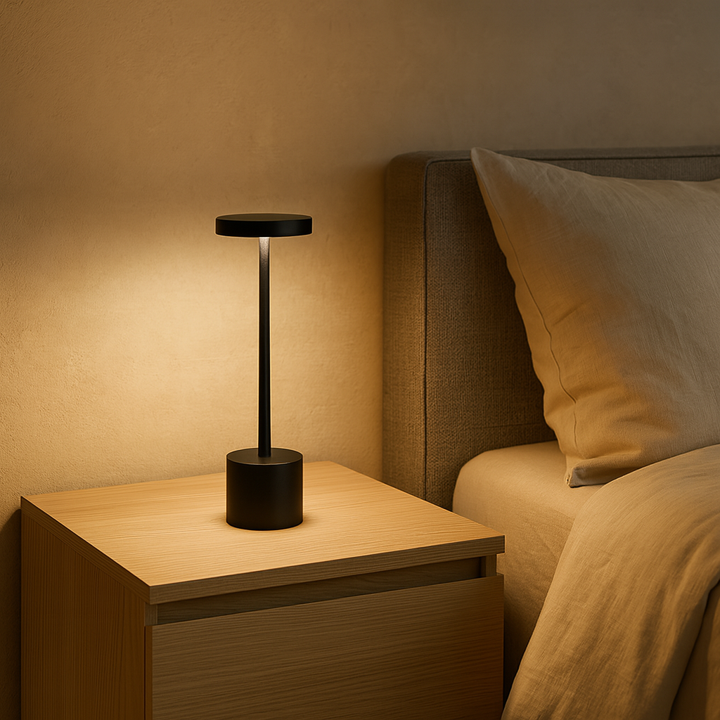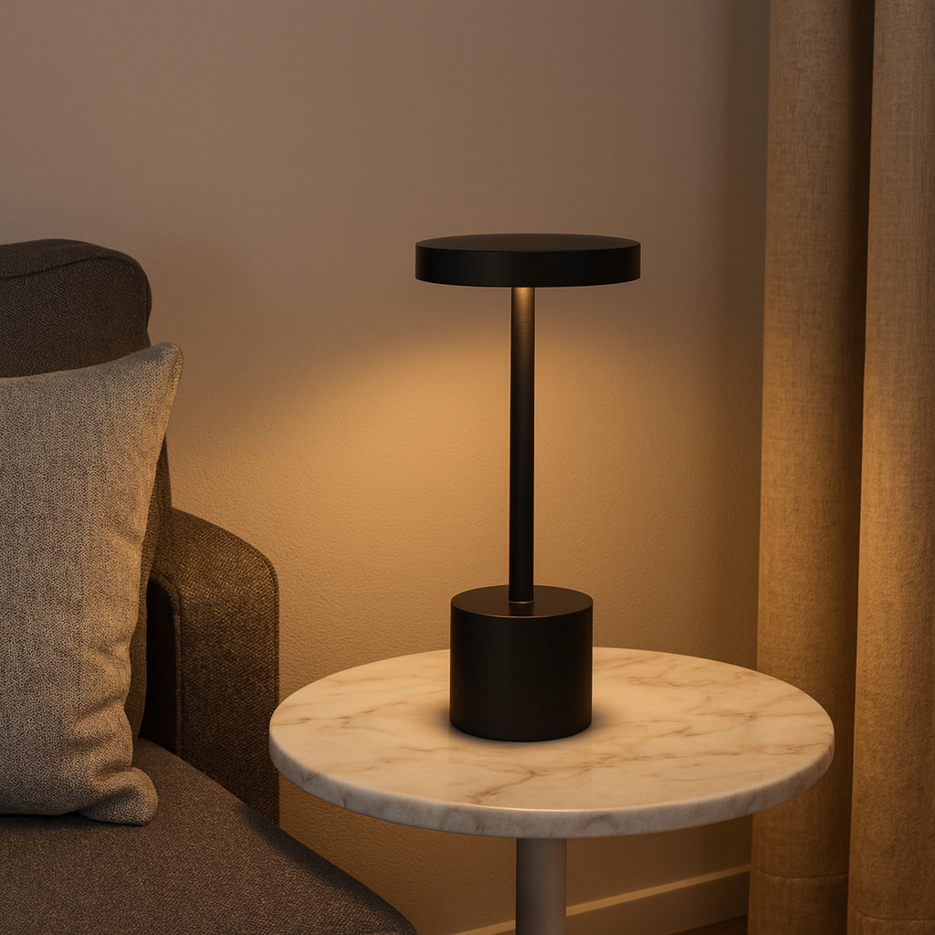 La Lámpara de Mesa PANAMA Recargable DIMM – Black suma elegancia minimalista y funcionalidad. Ajustás la intensidad tocando la parte superior y elegís entre 3 niveles (tenue, medio, completo) para lectura, trabajo o ambientación. Su LED de 5 W entrega 150 lm de luz cálida; la batería 5200 mAh brinda 16–20 horas por carga y se repone en 4–5 h vía USB-C. Con IP51 y terminación negra mate, combina con cualquier estilo y mantiene un look limpio y contemporáneo.