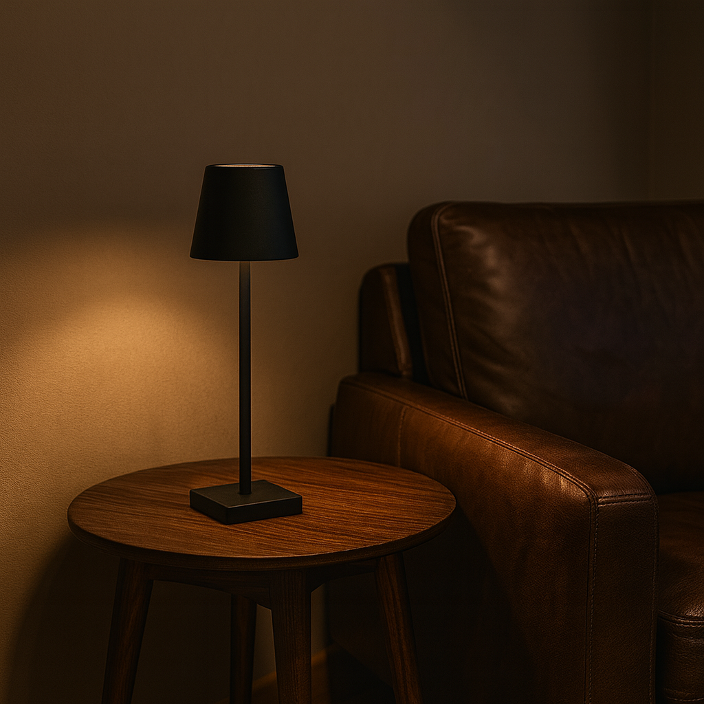 Lámpara de mesa Roger recargable DIMM – Black, un diseño sofisticado en aluminio negro mate que aporta un toque de elegancia y modernidad a cualquier espacio. Con 3,5 W de potencia y luz cálida de 3000 K, su sensor táctil permite encenderla y ajustar la intensidad de forma suave y precisa. Su batería de 5200 mAh se recarga en 6–7 horas mediante cable USB y ofrece entre 8 y 40 horas de autonomía, ideal para lugares sin tomas cercanas. Con certificación IP54, resiste polvo y salpicaduras, perfecto para interiores exigentes. Sus dimensiones compactas (38 cm de alto × 10 cm de base, pantalla de 11 cm de diámetro) la convierten en una opción versátil para escritorios, mesas de noche o rincones de lectura.