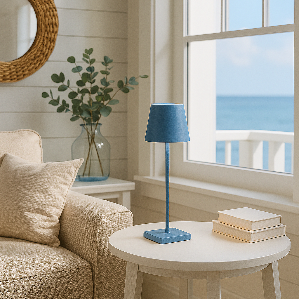Aporta un toque fresco y contemporáneo a escritorios, mesas auxiliares o balcones, funcionando sin cables gracias a su batería recargable de larga duración.