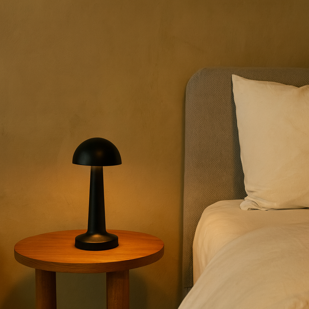 La Lámpara de Mesa SAMOA Recargable – Black combina diseño tipo hongo y acabado negro mate para un look minimalista que realza cualquier espacio. Emite luz cálida 3000 K con 3 W de potencia, ideal para leer, ambientar o acompañar una mesa de noche sin encandilar. Al ser recargable y sin cables, podés moverla donde la necesites y mantener una estética limpia. Medidas: Ø10 × 22 cm.