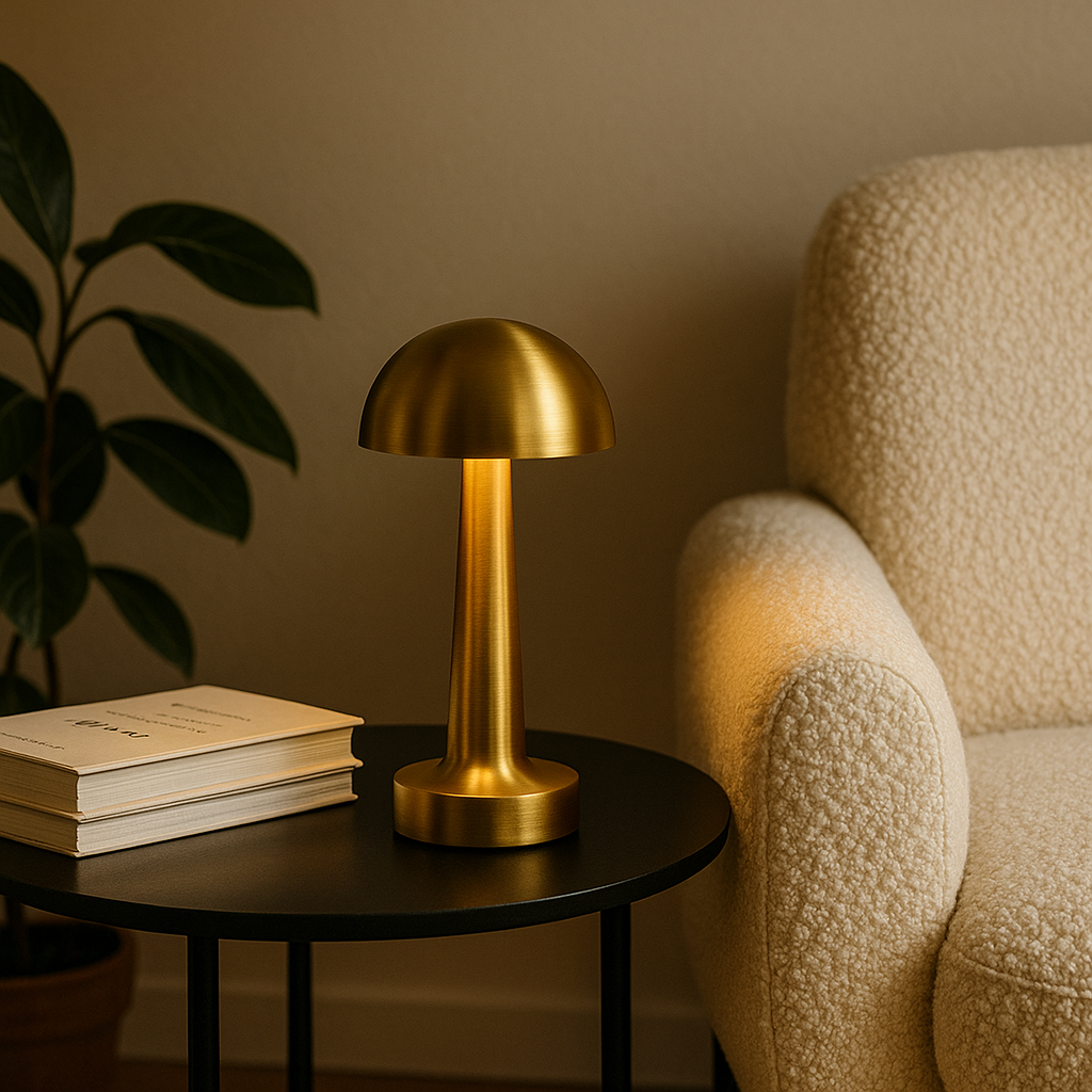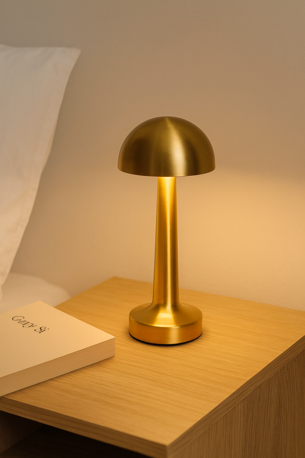 La Lámpara de Mesa SAMOA Recargable – Gold aporta un acento moderno con su silueta tipo hongo en metal dorado. Su LED de 3 W entrega luz cálida 3000 K perfecta para mesas de noche, livings o rincones de lectura. Compacta y versátil (Ø10 × 22 cm), ilumina sin encandilar y se integra con estilos nórdicos, modernos o clásicos. Ideal como luz de apoyo elegante y funcional.