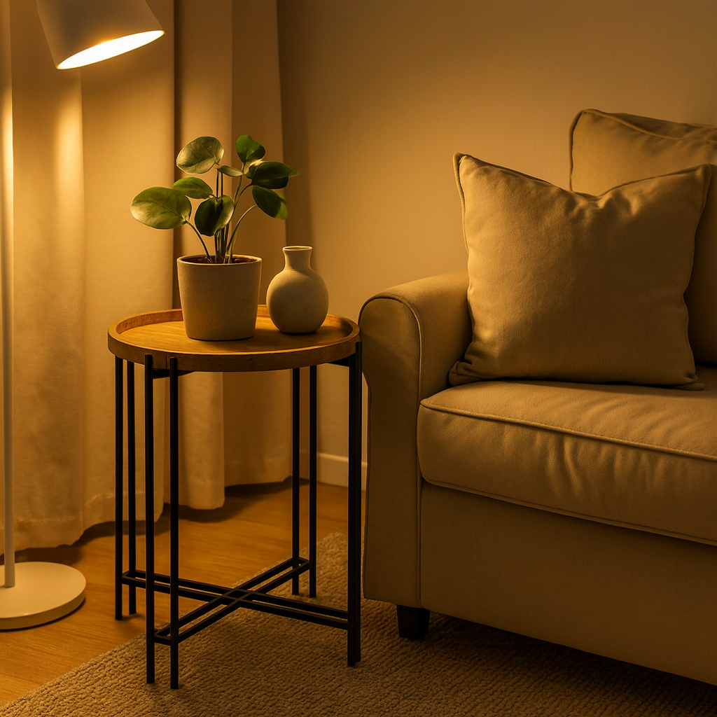 Dale un toque vanguardista a tu hogar con nuestra mesa auxiliar. Pensada para quienes buscan estilo único en cada detalle. <br/>Medidas aproximadas: 54x54x.
