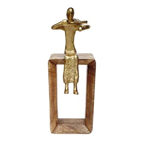 Aporta un toque moderno y artístico a tu hogar con nuestra figura de Músico Pequeño Decorativo. Su diseño contemporáneo de metal dorado sentado sobre una base de madera cuadrada es perfecto para quienes buscan alta calidad y un estilo único. Ideal para estanterías o escritorios.