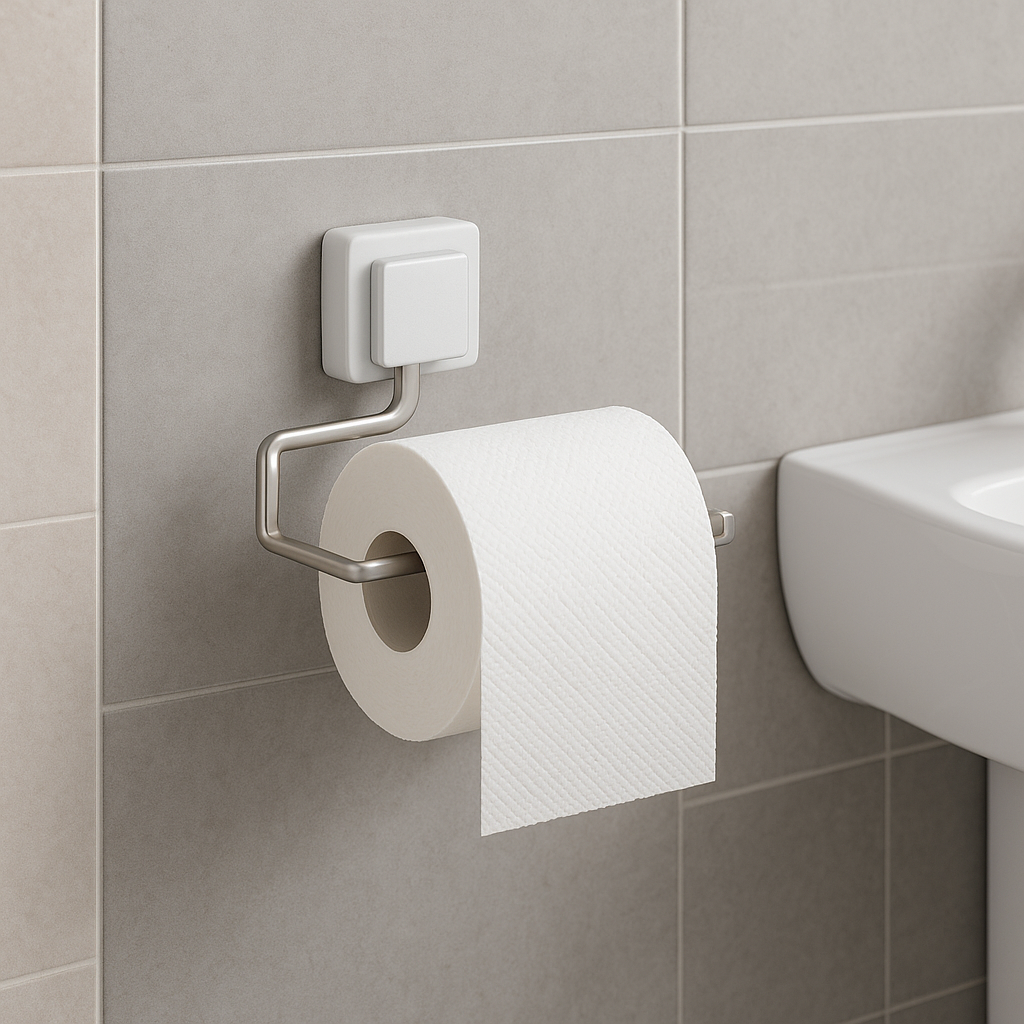 Porta rollo triple adhesivo en negro y madera. Estilo industrial para tu baño.