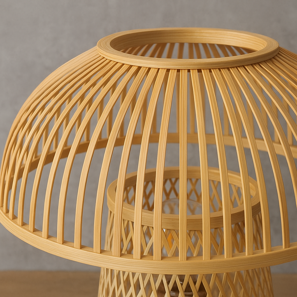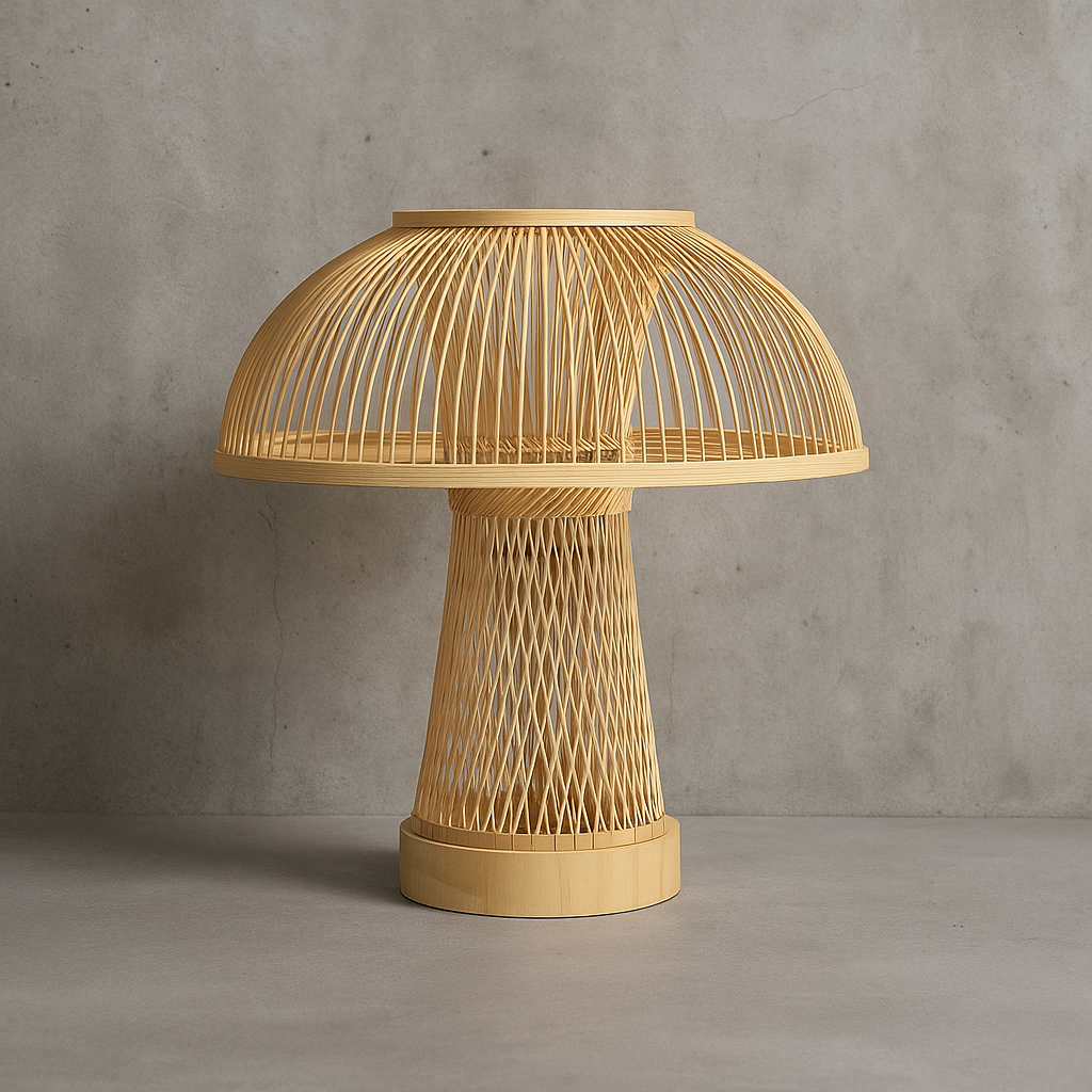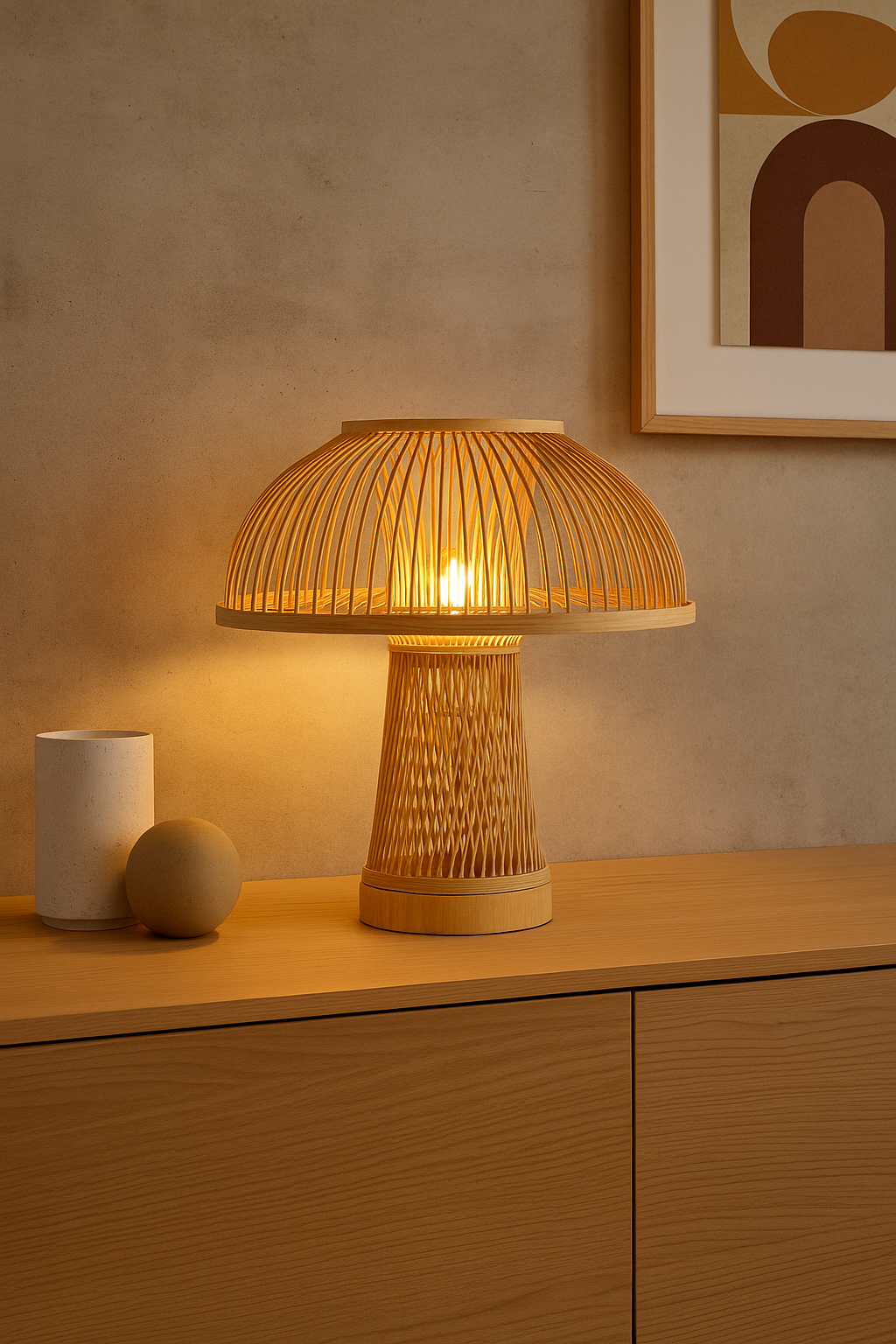 La Richmond es una lámpara de mesa única que combina artesanía en bambú natural con un diseño moderno y sofisticado. Su estructura tejida crea un juego de luces y sombras cálido y envolvente, aportando un toque natural y elegante a cualquier ambiente.