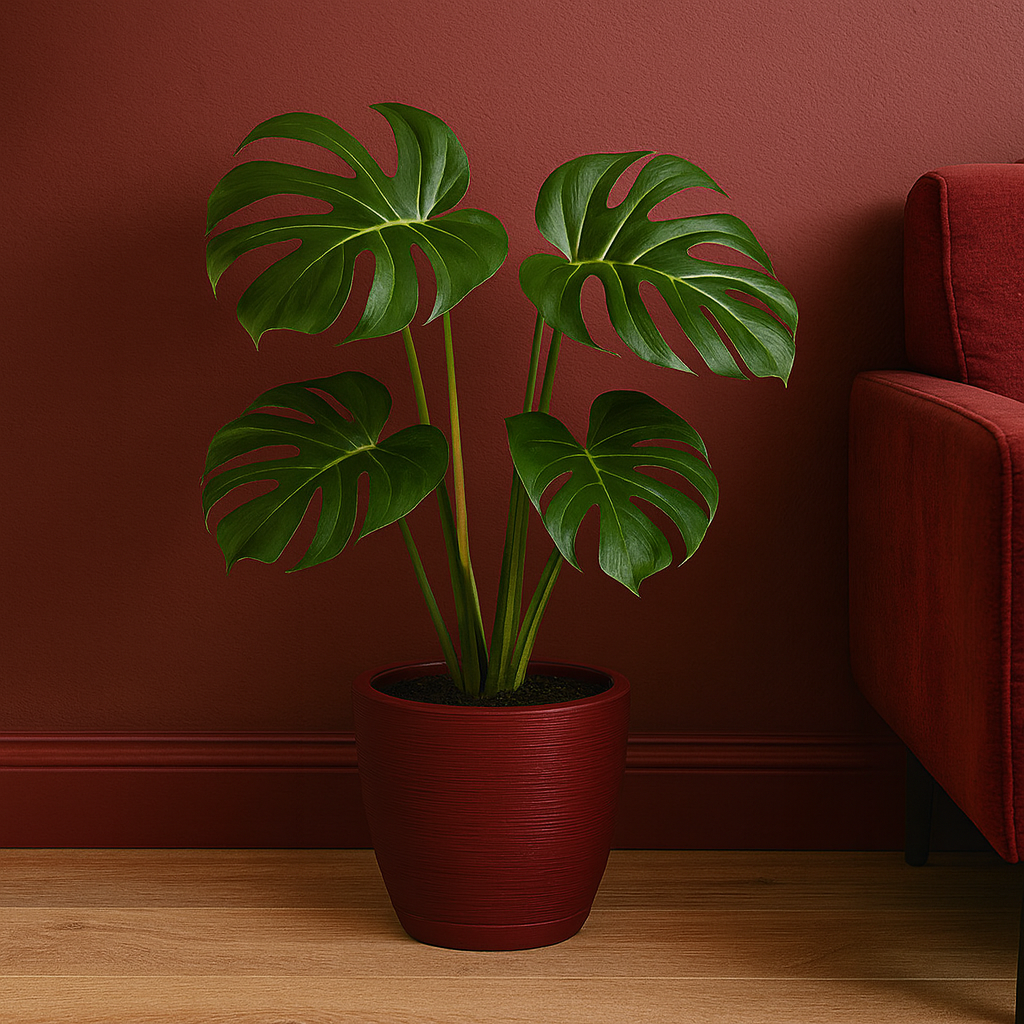 La maceta "Asteca" de 46 cm de diámetro y 38 cm de altura destaca por su tonalidad vino intenso y una textura inspirada en patrones tribales, que añaden un toque auténtico y sofisticado a cualquier espacio. Fabricada para combinar estilo y funcionalidad, incluye un plato a juego que facilita el riego controlado, evitando derrames y protegiendo las superficies. Ideal para realzar plantas de tamaño mediano o grande, esta maceta aporta un diseño distintivo y práctico para ambientes interiores o exteriores.