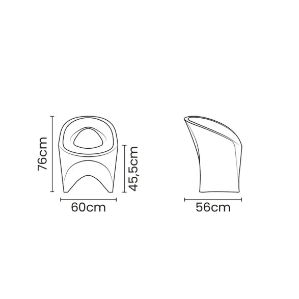 SILLON DE POLIETILENO "JET" GRAFITO Sillón de polietileno en grafito, con diseño minimalista y versátil, ideal para jardines y espacios exteriores de alto estilo.Ancho 560mm, altura 760m (incluido respaldo y los laterales), profundidad 600mm. Altura del asiento: 455mm (desde el piso)