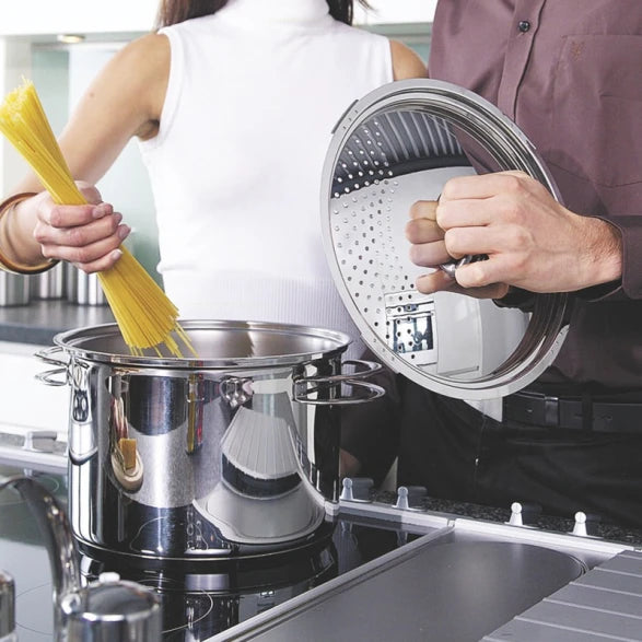 OLLA PARA SPAGHETTI 7 LTS. "SOLAR"Olla para spaghetti de 7 litros "Solar", perfecta para cocinar pasta al dente.