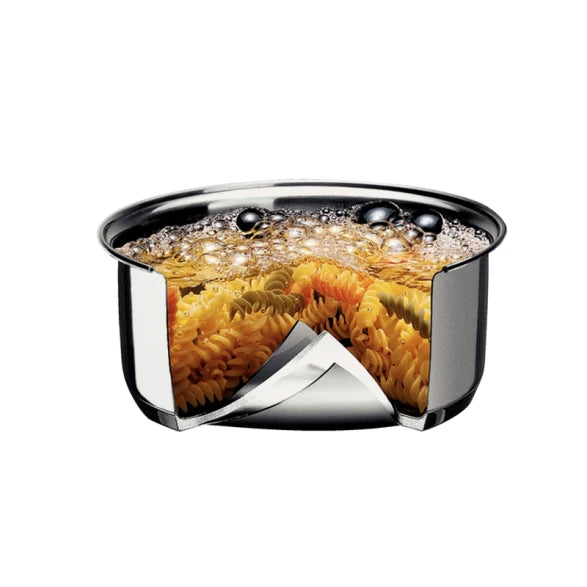 El juego esta compuesto por: 1 olla Ø22cm 3.30 lts. con asas, 1 olla honda Ø18cm 2.20 lts. con asas, 1 hervidor Ø12cm 1.40 lts., 1 sartén Ø 20cm 1.30 lts.