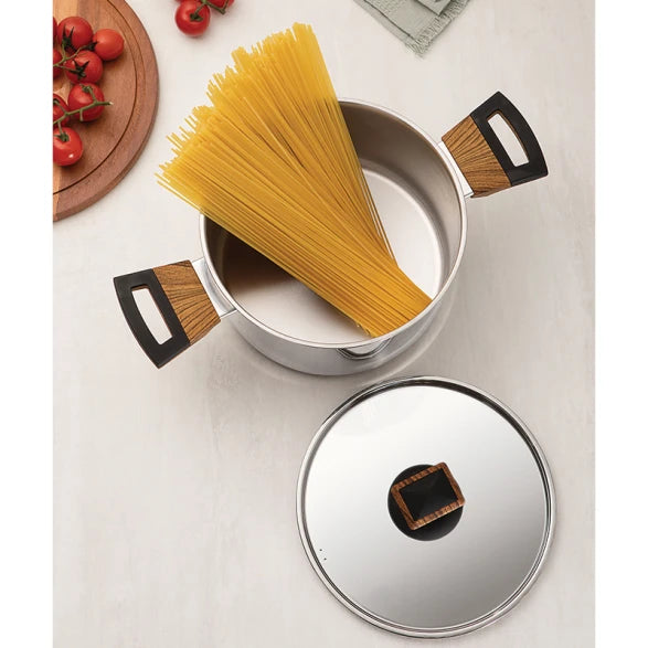 JUEGO OLLAS 4 PIEZAS BAQUELITA MADERA "BRAVA"Juego de ollas de 4 piezas con baquelita y madera "Brava", elegante y resistente para tu cocina.